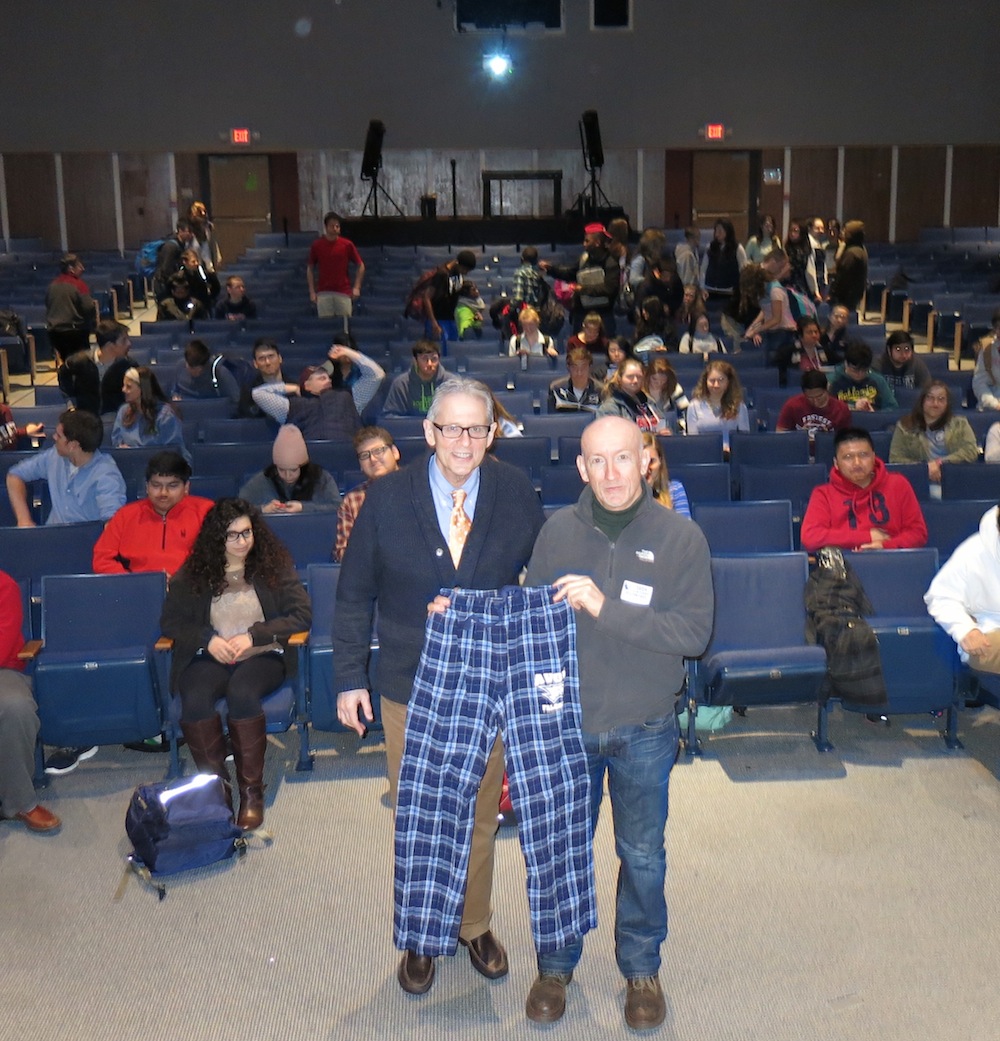 Prior to the screening, Nigel also spoke with teens at Avon High School and was presented with a warm pair of flannel PJS with the Avon school logo by social studies teacher Stu Abrams, as it was quite a bit more chilly on the East Coast than what Nigel was used to in Los Angeles!